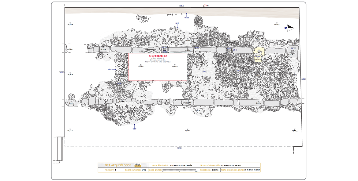 Peritación arqueológica mediante catas sondeo relativo al Proyecto de Ejecución de Ampliación del Colegio Sacerdotal y adecuación de dependencias del Palacio de la Calle Nuncio Nº 13, Madrid. Promotor: MINISTERIO DE DEFENSA.